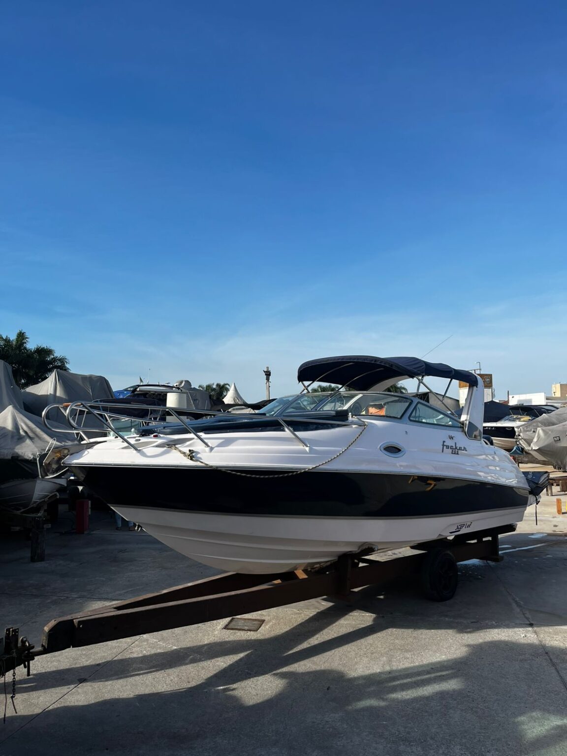 Estrutura: T-top de fibra + toldo de popa