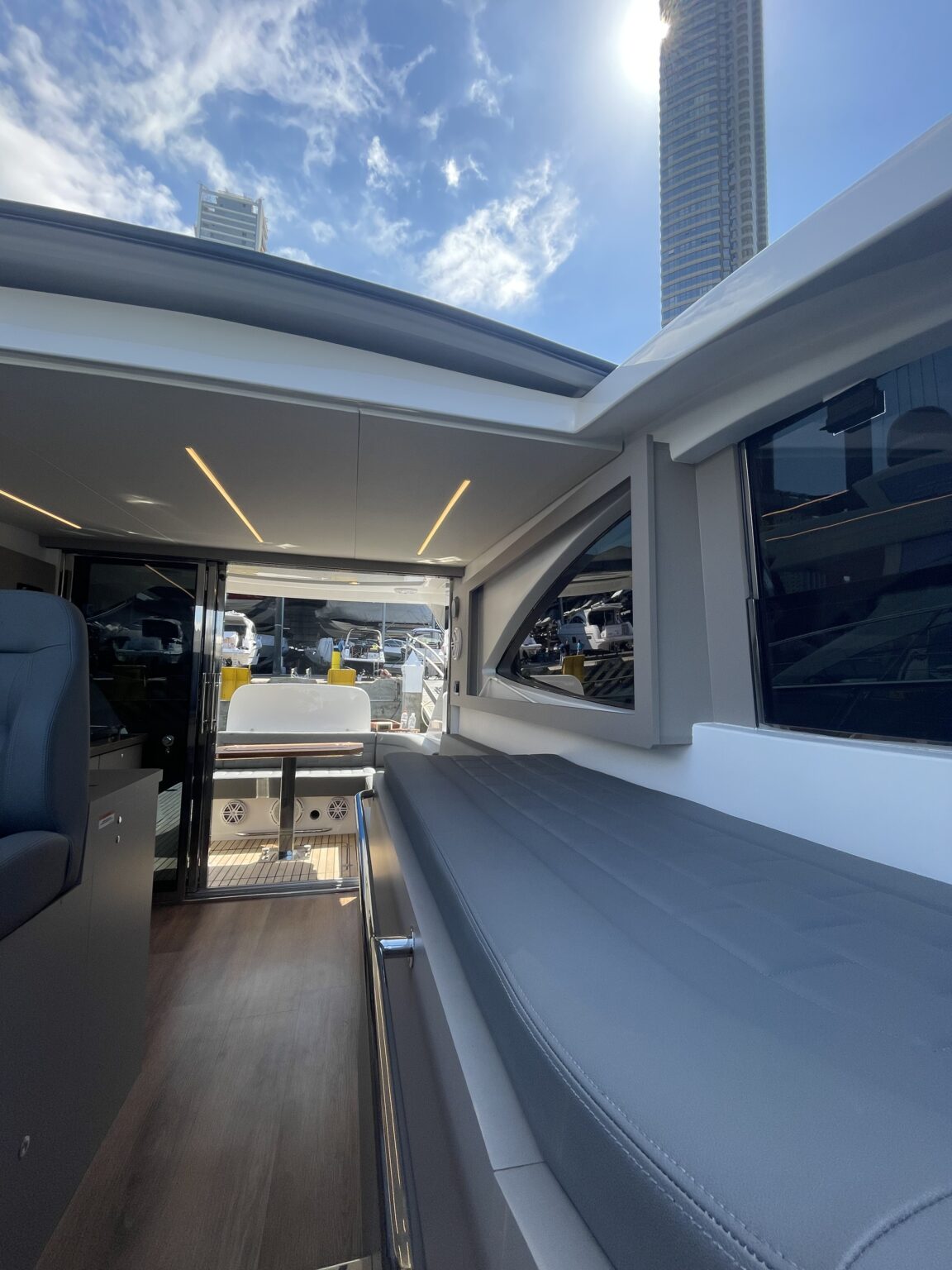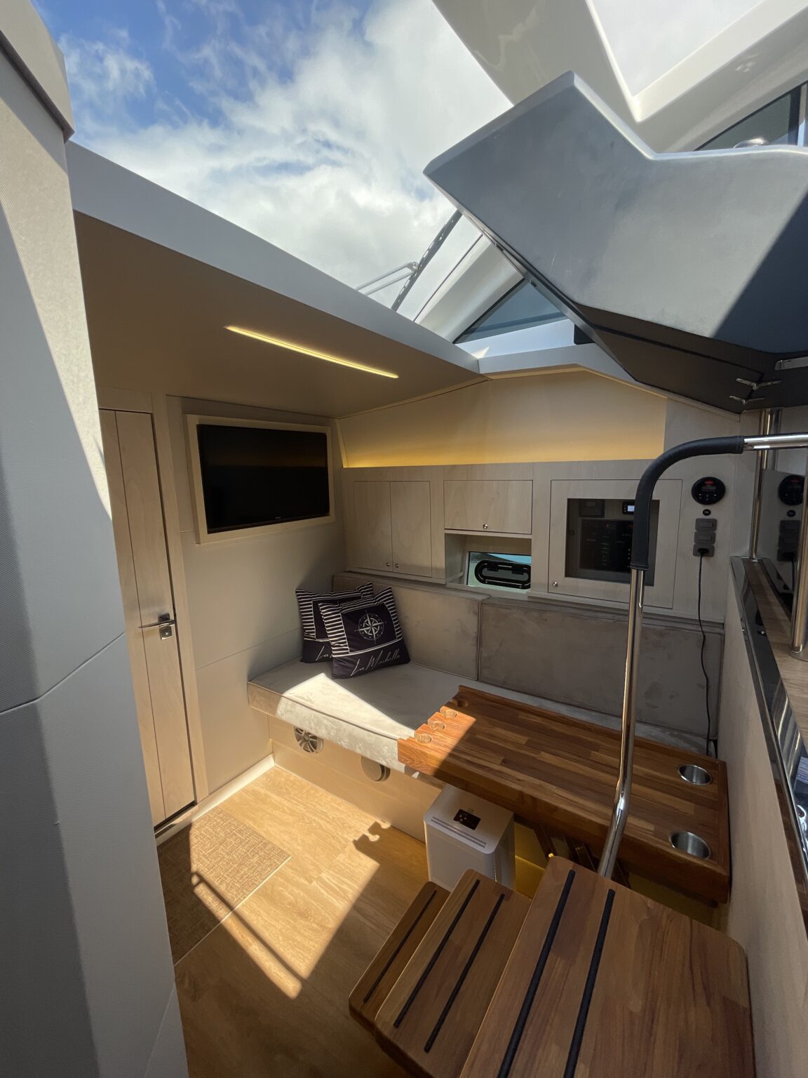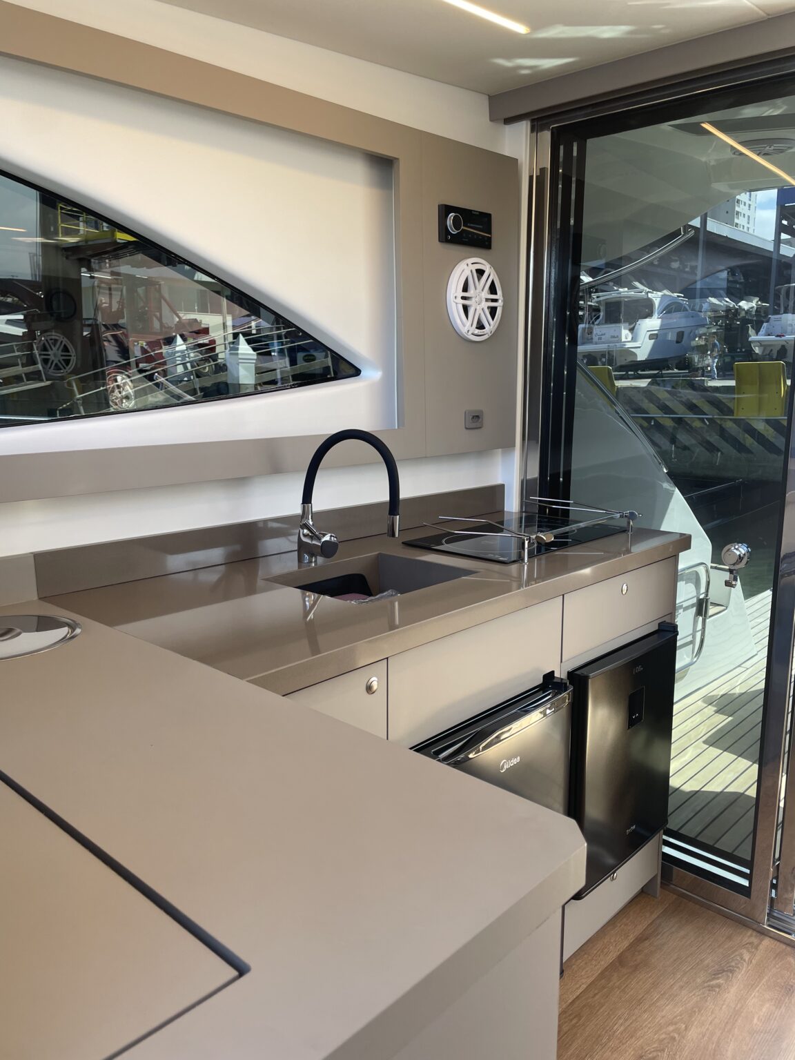 5 pares de alto-falantes (incluindo proa e popa) + 1 subwoofer JL Audio